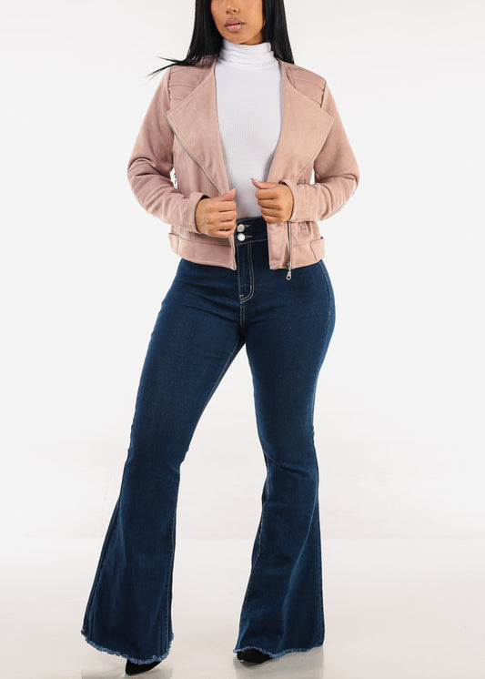 High Waisted Stretch Flared Jeans Dark Wash w Suspenders