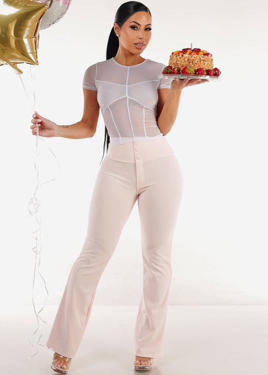 Butt Lift Stretchy High Waist Dressy Bootcut Pants Light Pink